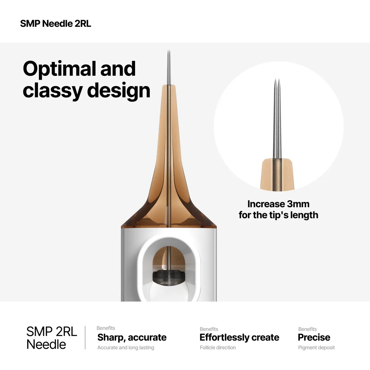 0.1mm needle size perfectly matches human hair follicles. 2 channels vs 3RL's 4 channels for superior control and natural results.